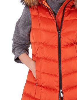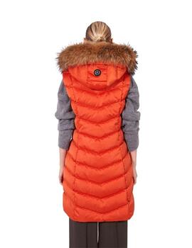 Este Chaleco largo de marca HENRY ARROWAY es una prenda imprescindible para la temporada de frío. Con un vibrante color naranja, añade un toque audaz y moderno a cualquier look. La prenda cuenta con un diseño acolchado y capucha con borde de pelo. El cierre frontal de cremallera bidireccional permite un ajuste personalizado, mientras que su diseño sin mangas es perfecto para crear capas.